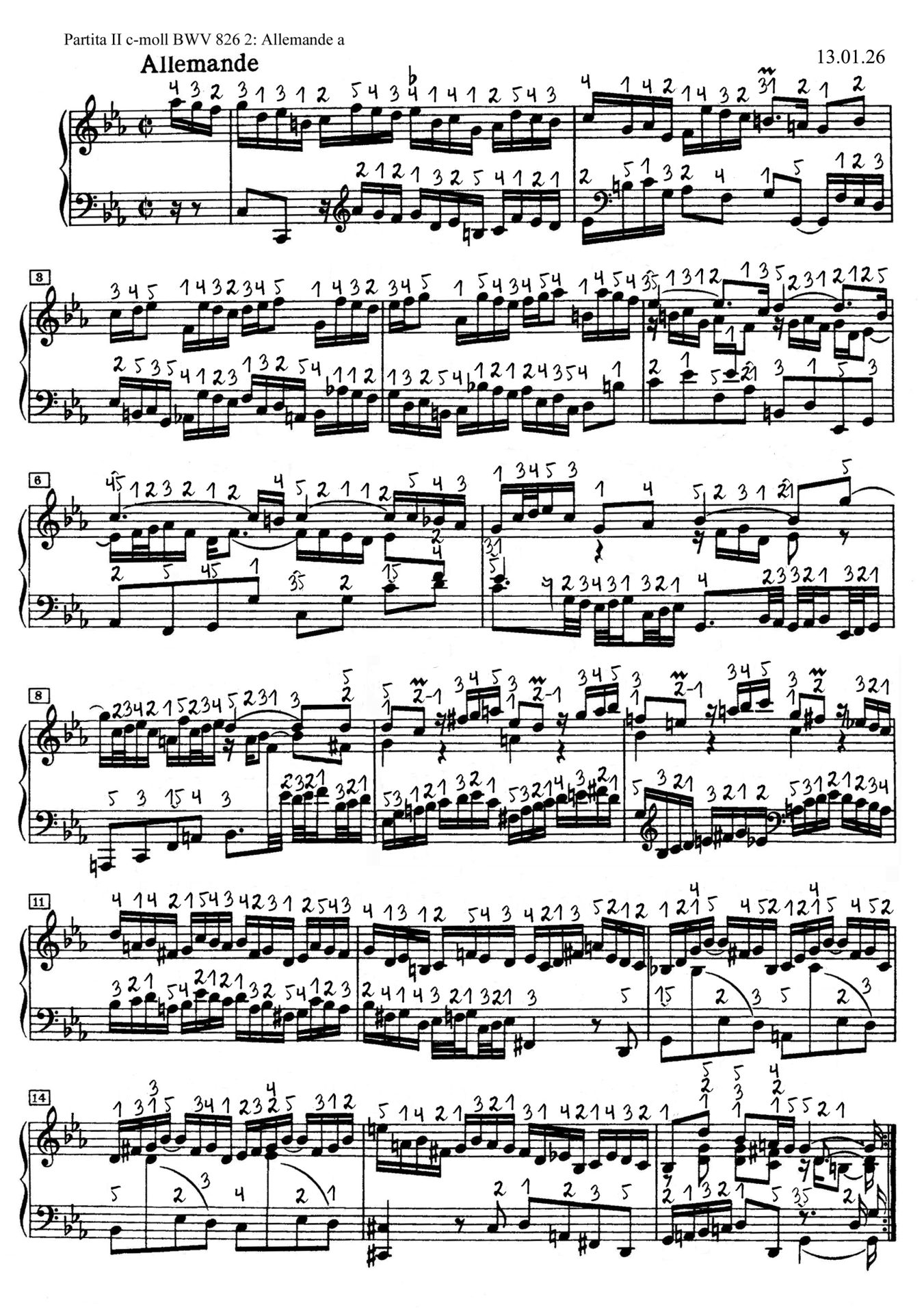 Noter » Johann Sebastian Bach » J. S. Bach: 6 Partitas for cembalo BWV 825-830 » Partita II c-moll BWV 826 » Partita II Allemande a