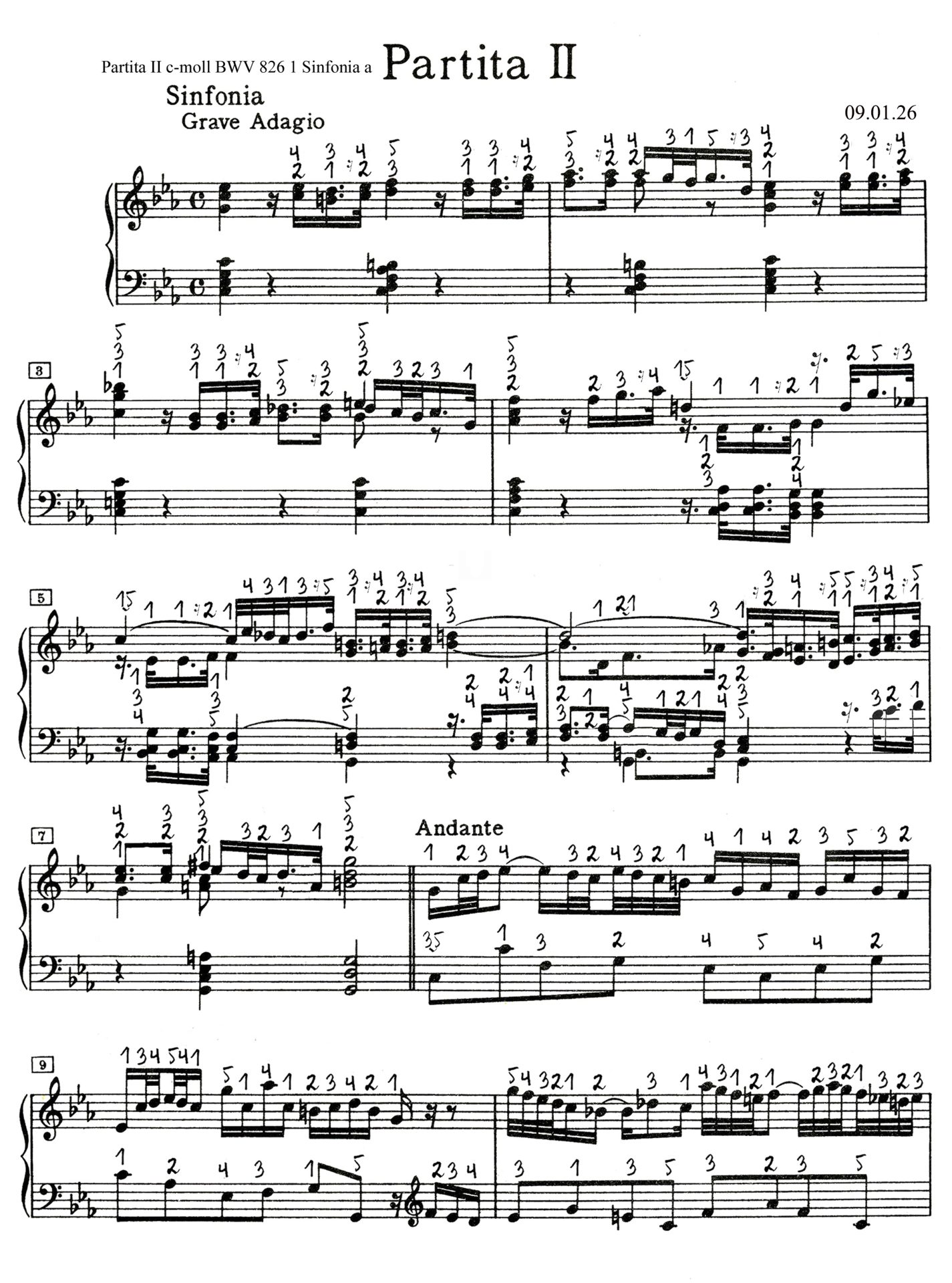 Noter » Johann Sebastian Bach » J. S. Bach: 6 Partitas for cembalo BWV 825-830 » Partita II c-moll BWV 826 » Partita II Sinfonia Andante a