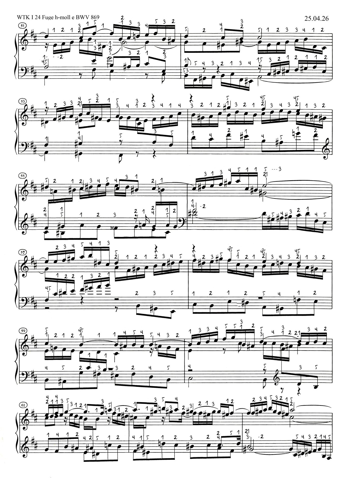 Noter » Johann Sebastian Bach » Das Wohltemperierte Klavier I BWV 846-869 » WTK I 24 h-moll BWV 869 » WTK I 24 Fuge h-moll e