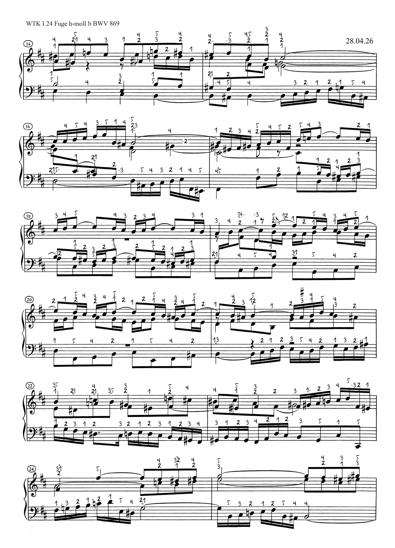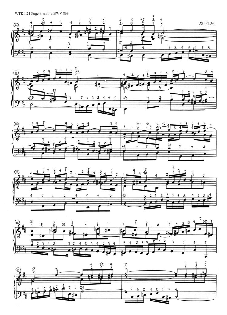 Noter » Johann Sebastian Bach » Das Wohltemperierte Klavier I BWV 846-869 » WTK I 24 h-moll BWV 869 » WTK I 24 Fuge h-moll b
